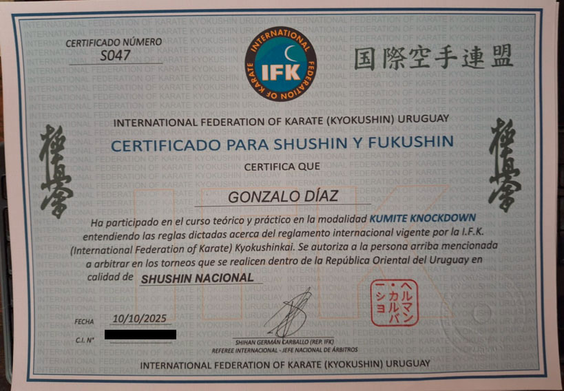 Arbitraje en Torneos oficiales de IFK Kyokushin a