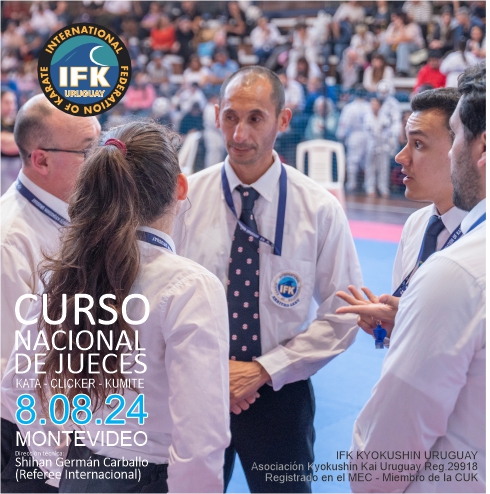 Curso anual de arbitraje.El sábado 19 de setiembre se realizará en el Dojo Estirbo el curso anual de arbitraje. El curso pretende formar nuevos referee en las modalidades: Kata y Kukite cliker. DIcha actividad es para los "Referee" ya certificados y para los cinturones marrones y negros que deseen participar. Post: